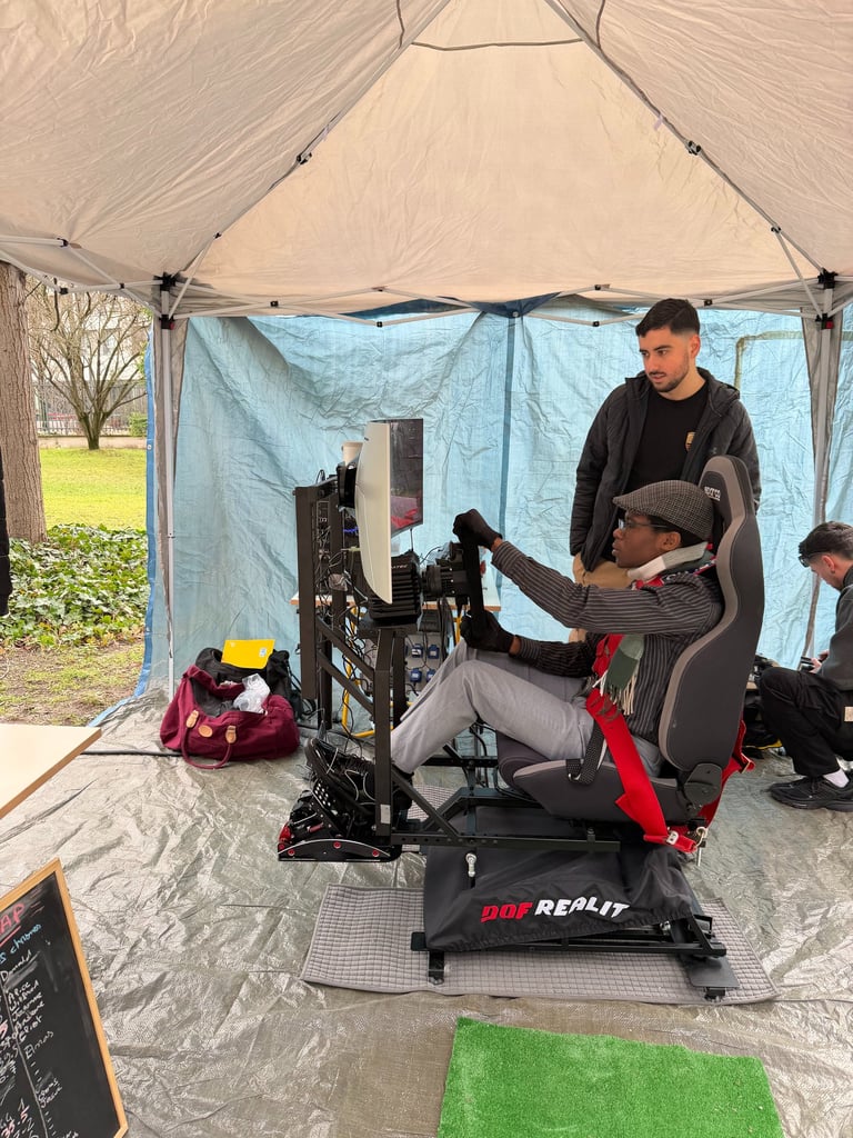 Cette configuration garantit une stabilité maximale et une latence quasi nulle pour des courses fluides et immersives. Par ailleurs, chaque simulateur peut également fonctionner de manière totalement indépendante, sans connexion Internet, pour des sessions en solo. Nous pouvons donc intervenir dans tout type de lieu, même sans accès au réseau.